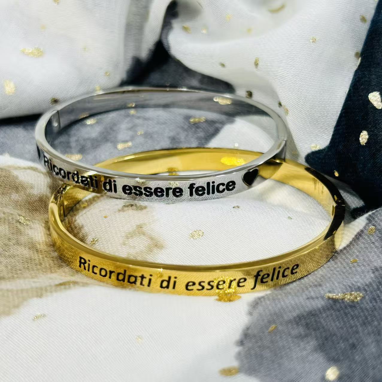 Spesso ci dimentichiamo delle cose più semplici. Questo bracciale è un dolce promemoria: anche nei giorni più ordinari, ricorda di essere felice. Perché lo meriti.